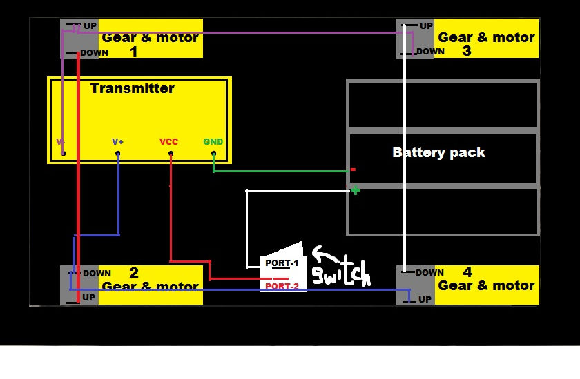 16.connect a wire to motor 3 up side and connect the other end to motor 4 down side.